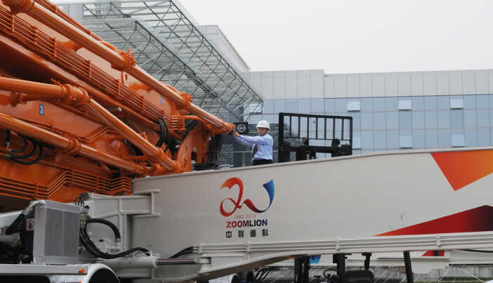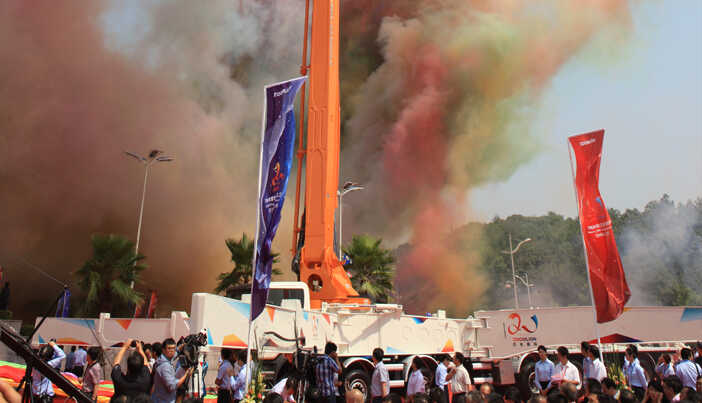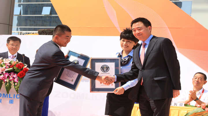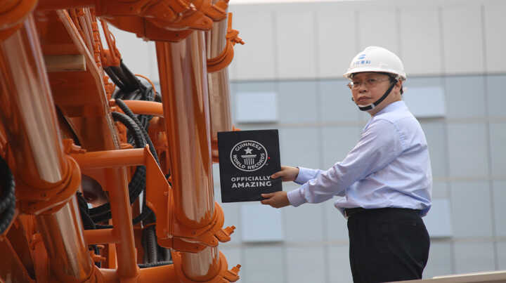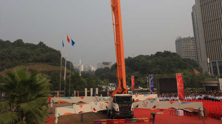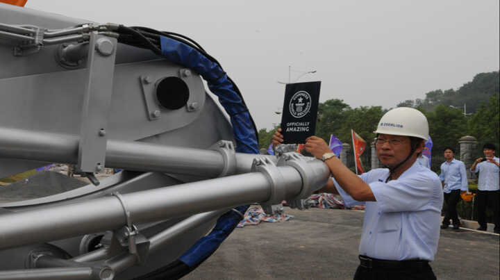 中聯(lián)重科7橋7節(jié)臂混凝土泵車以臂架總長度101.18米創(chuàng)吉尼斯世界紀錄