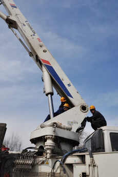 “是這樣的,我這臺(tái)泵車是2003年從中聯(lián)出廠的,沃爾沃底盤,47米泵車,我是05年接手過來的,設(shè)備的合格證和說明書早就找不到了。泵車一直用的還可以,現(xiàn)在我們北京隊(duì)伍參加災(zāi)后重建對(duì)口支援工程,我和泵車就跟著過來了。要不你們安排人過來看一下吧。”
