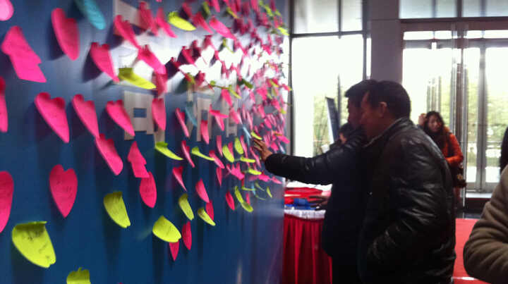 嘉賓在“成就20年、關懷每一天”寄語墻上寫下對中聯(lián)重科的祝福
