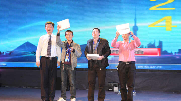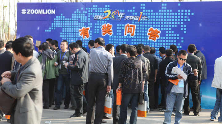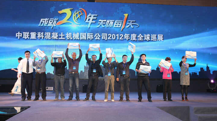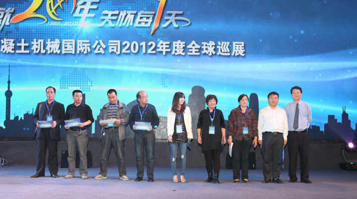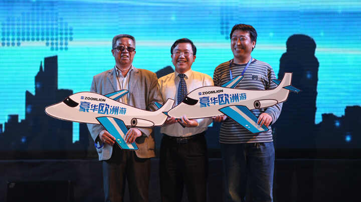 中聯(lián)重科混凝土機(jī)械國際公司副總經(jīng)理陽昌康與驚喜大獎(jiǎng)20萬元代金券得主合影